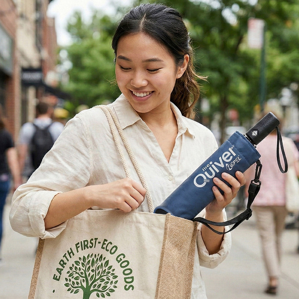 Weather protection designed for life in motion. The Repel Quiver Case & Travel Umbrella pairs a wind-resistant umbrella with a versatile carrying case built for hands-free convenience. Wear it crossbody, over your shoulder, around your waist, or clip it to your bag for easy access wherever you go.